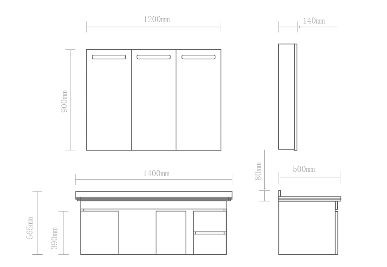 尺寸:化妝鏡 1200X900X140 (mm) + 浴室柜 1400X500X565 (mm)